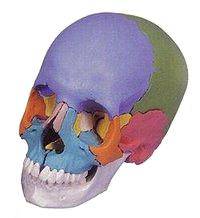 顔と頭の骨は前述したように、15種類23個の骨から構成されております。それぞれが縫合という関節でつながっています。