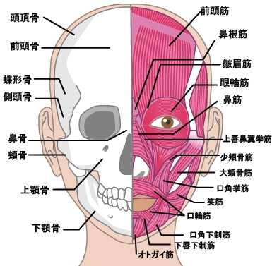 また、顔面には皮筋(表情筋)という筋肉があり、頭部にも筋肉があります。この筋肉のバランスが崩れるとですね、顔がゆがんだり、たるんだりします。
