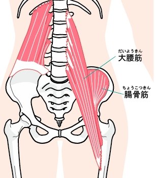 これでは猫背反り腰と矛盾をしているようですが、お腹の中の深い部分で「大腰筋」が足と腰椎につながっているので、座っている時は股関節が90度の屈曲(曲がっている)しているので、それほど問題はありません。