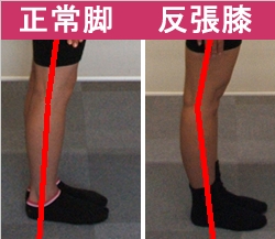 O脚矯正を確実にするために、もう一つ大事なポイントがあります。それは「反張膝」です。反張膝というのは膝関節の過伸展の事です。O脚矯正で大切な事はこの過伸展のO脚の見分けです。