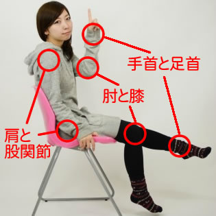 それは「手首と足首」、「肘と膝」、「肩関節と股関節」という具合です。原則として同側です(右手首なら右足首というように)。