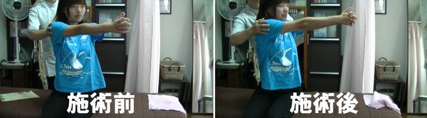 一度試してみると良く分かりますが、施術をしないでもつま先を開いて立つと、膝の間はそれだけで寄ります。このように基準が変わると正しい判断ができません。つまり正しい調整ができないという事です。特に後ろからとった写真はつま先が見えにくいので要注意です。