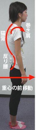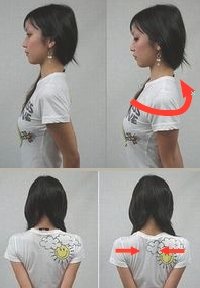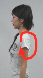 腕を回すと肩甲骨は若干上下には動きますが、目的の肩甲骨はほとんど動きません。正しい方の回し方は「肩甲骨」を動かすということです。猫背になると肩が前側にでてきます。