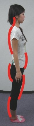 もともと背骨(脊椎)は横から見ると緩やかな「S字」カーブを描いています。頸椎(首の骨)は前カーブ、胸椎(胸の骨)は後ろカーブ、腰椎(腰の骨)は前カーブです。