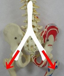 私たちの背骨はこの骨盤の真ん中(仙骨)の部分で、アルファベットの「Y」の字を逆さにした形になっています。上から流れてきた力(重力)は骨盤の所で左右に分かれる形となります。