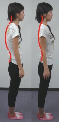 そうなるとバランスをとるために、胸椎の後ろカーブが大きくなります。これが慢性的になり、固定された状態が「猫背」と呼ばれるものです。